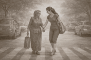 Sample Story: Priya, a 22-year-old college student, was on her way home after class when she noticed an elderly woman standing at a zebra crossing, looking nervous and holding shopping bags. Cars kept passing, and no one seemed to slow down. Priya quickly walked over, smiled at the woman, and gently held her hand. She waited for a safe moment, signalled the cars to stop with her hand, and slowly walked the woman across the road. The old lady smiled with gratitude and thanked her warmly. Priya smiled back, feeling happy that she could help. She also made sure the woman didn’t need any further assistance before continuing her way. That simple act of kindness left both of them feeling good and reminded Priya how important small, thoughtful actions can be in daily life.